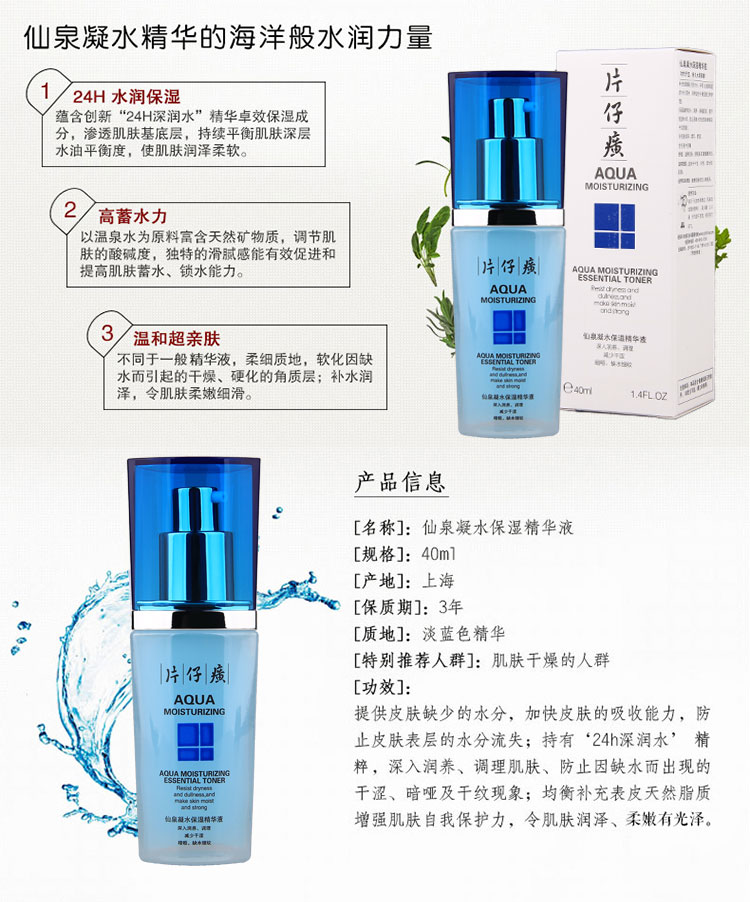 片仔癀仙泉凝水保濕精華液深層補水舒緩滋養調理肌膚40ml官網正品