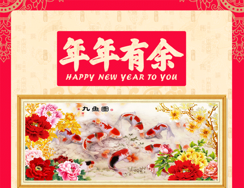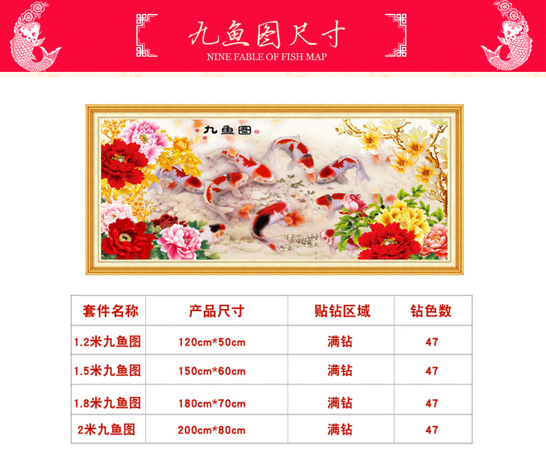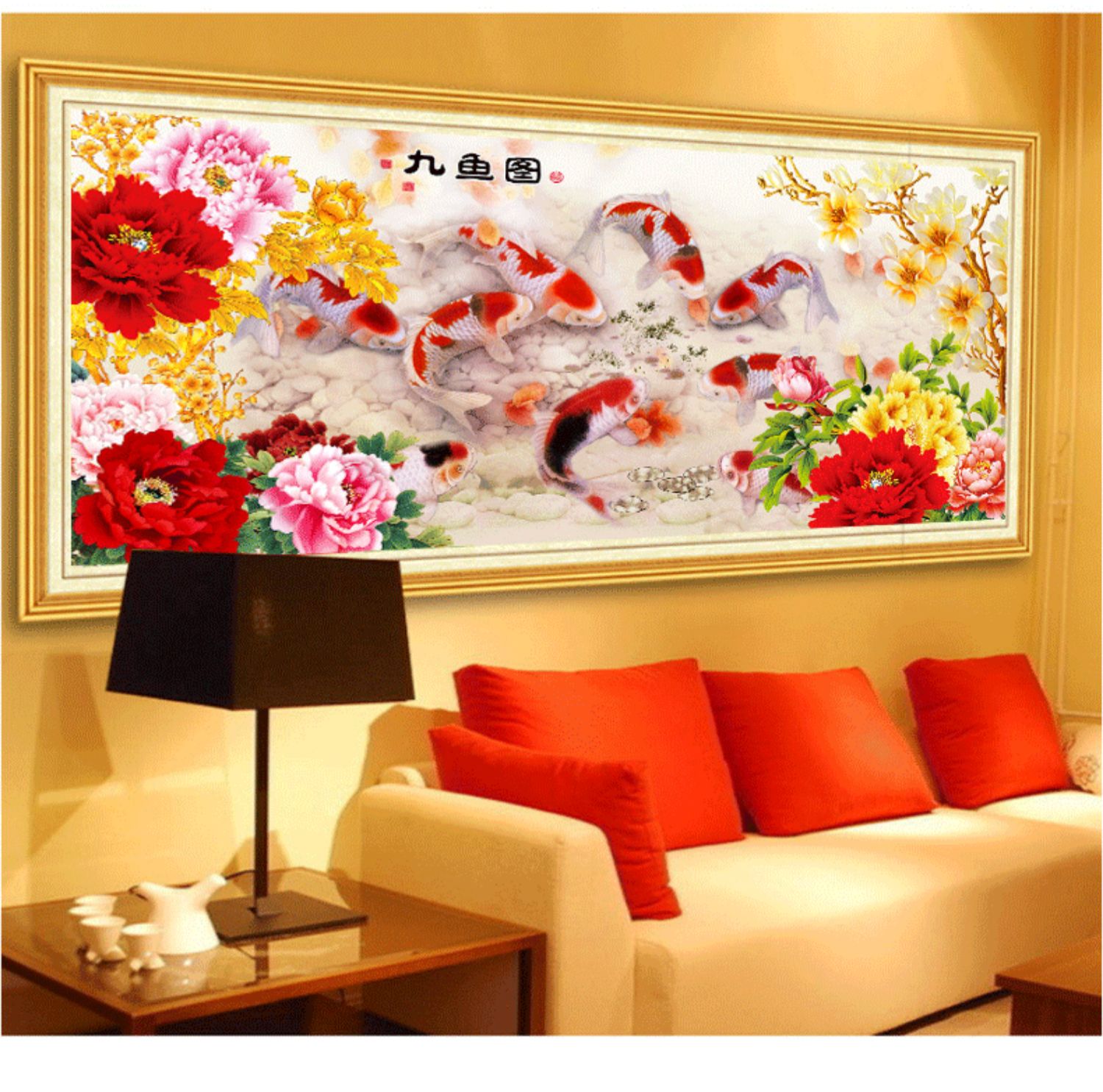 鉆石畫2023年新款花開富貴2022磚石十字繡九條魚圖客廳滿鉆牡丹花