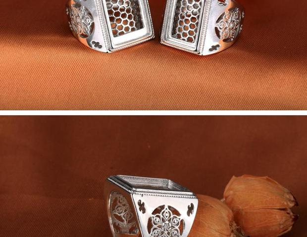 S925純銀戒指空托男復古鑲嵌綠松石蜜蠟戒托方 11*14 12*15