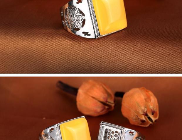 男s925空托鑲嵌綠松石蜜蠟12銀戒指
