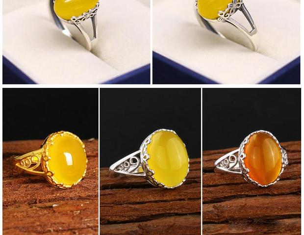 s925純銀戒指空托男鑲嵌綠松石蜜蠟