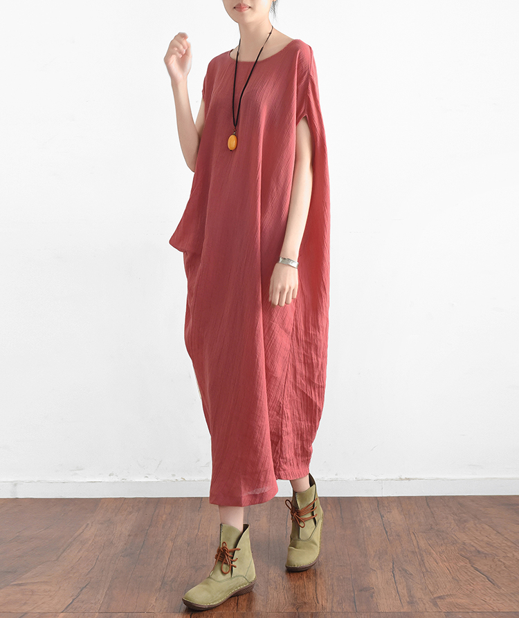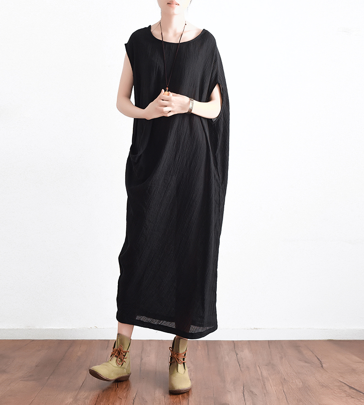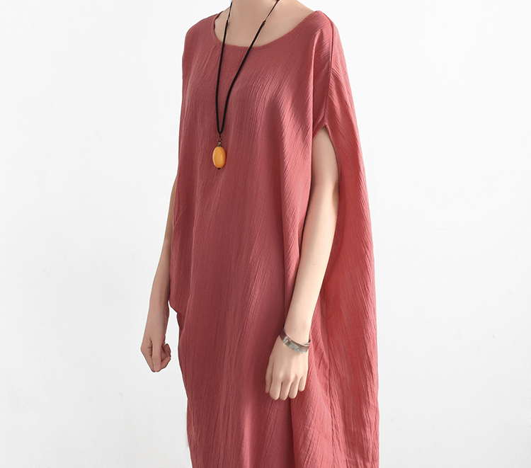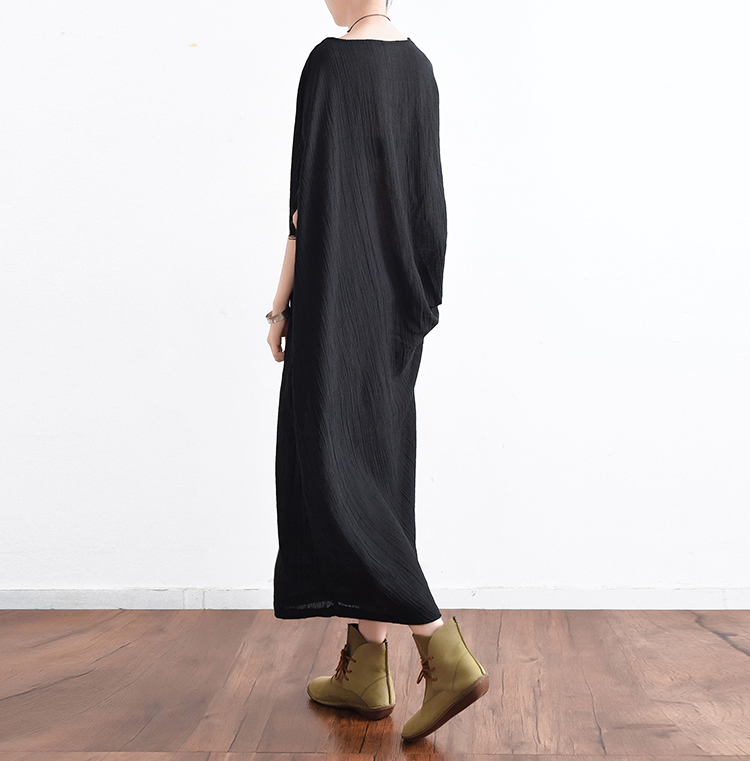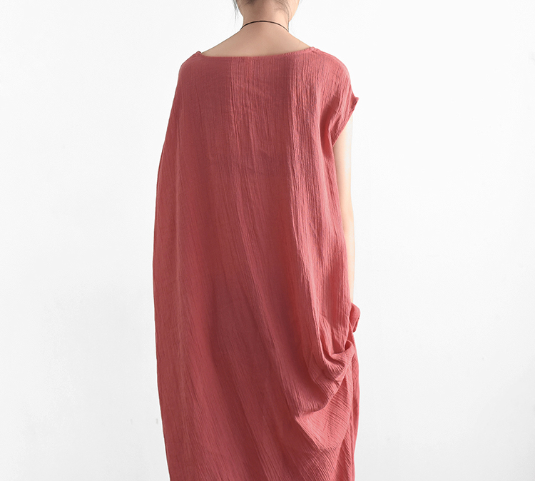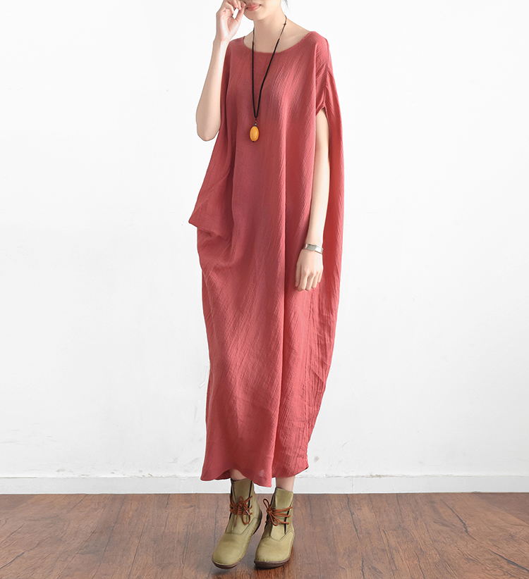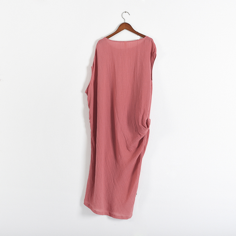 2023春夏季新款原創設計文藝寬松大碼肌理棉麻不規則連衣裙長袍子