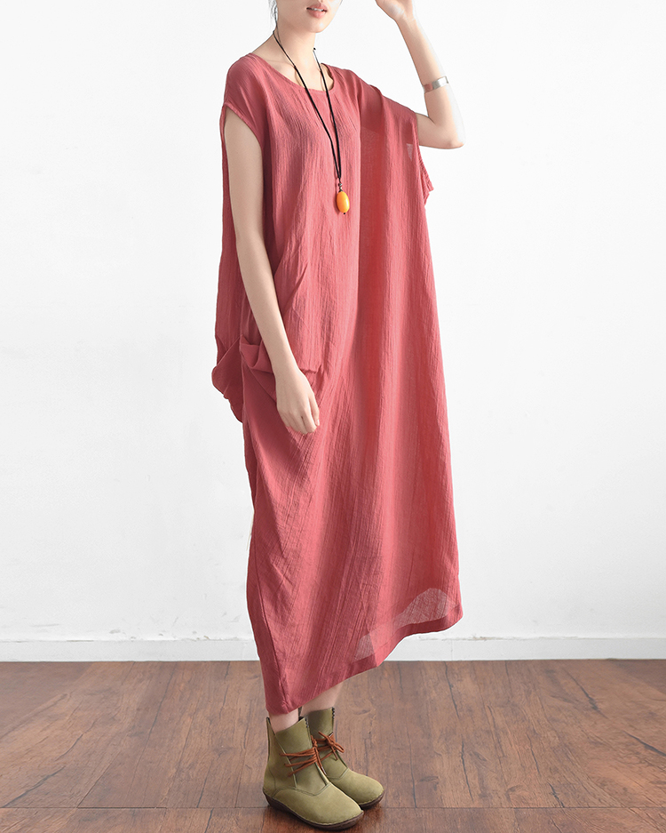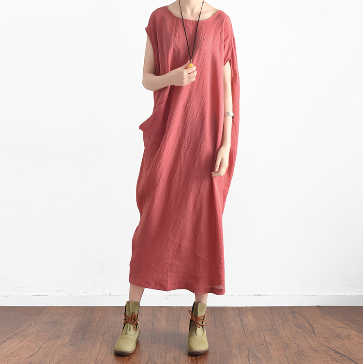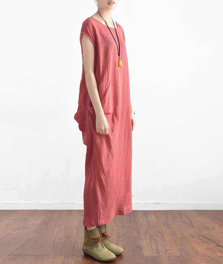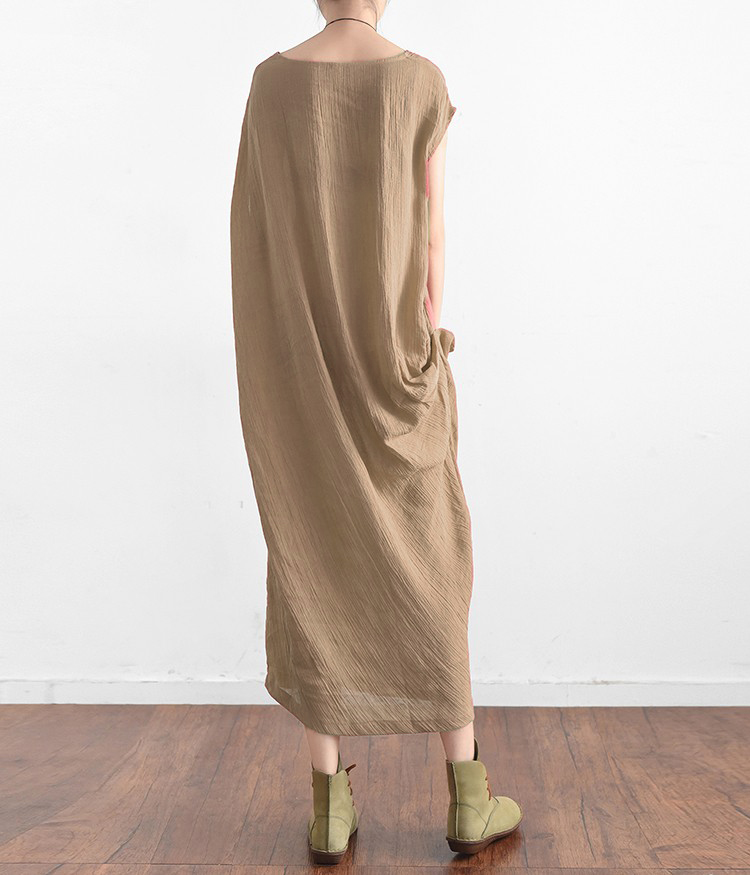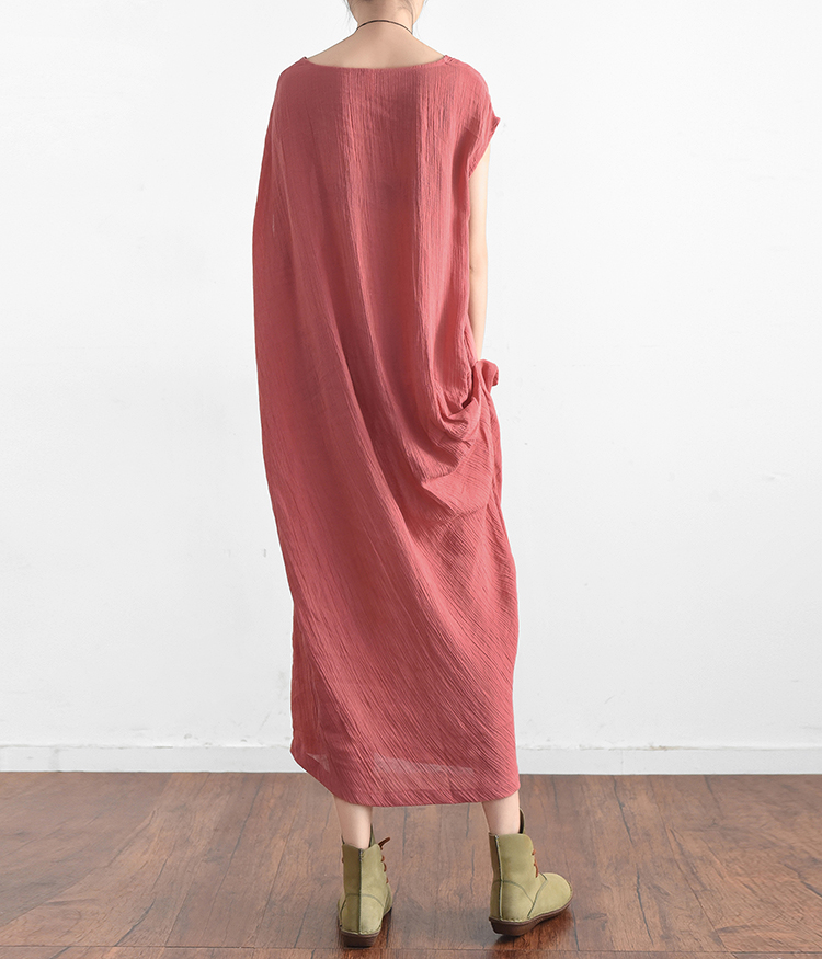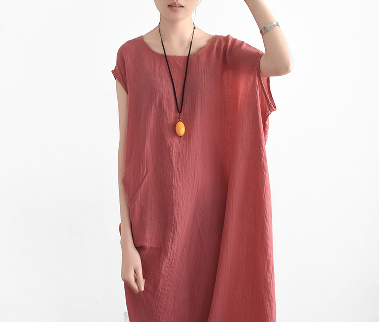 2023春夏季新款原創設計文藝寬松大碼肌理棉麻不規則連衣裙長袍子