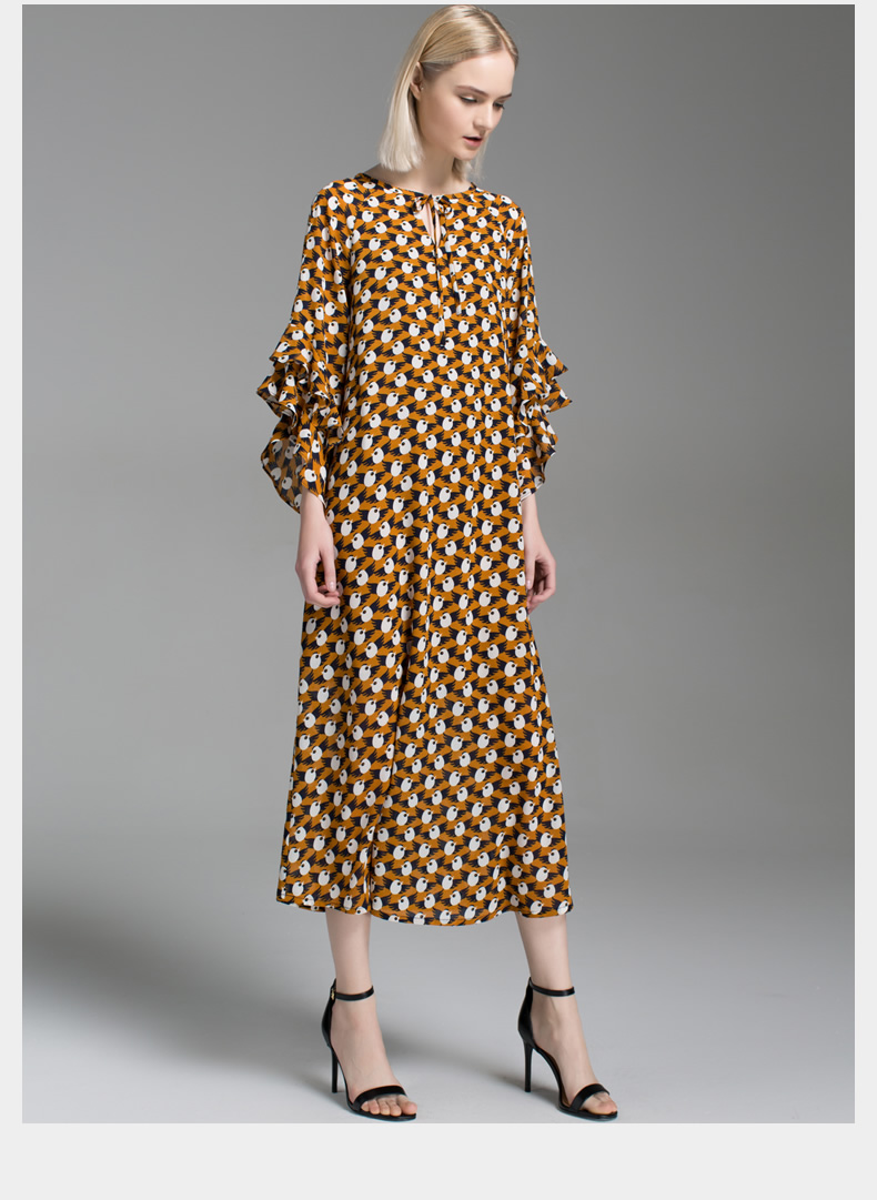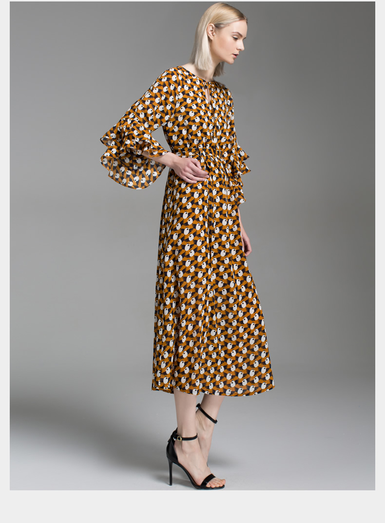 悅空間寬松雪紡印花超長款長袖長裙