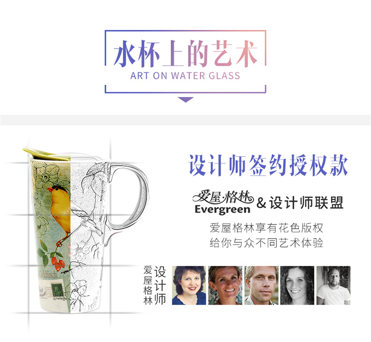 愛屋格林陶瓷內膽帶蓋茶水分離茶杯