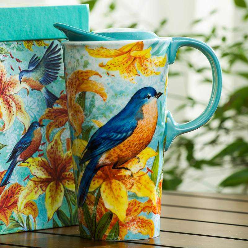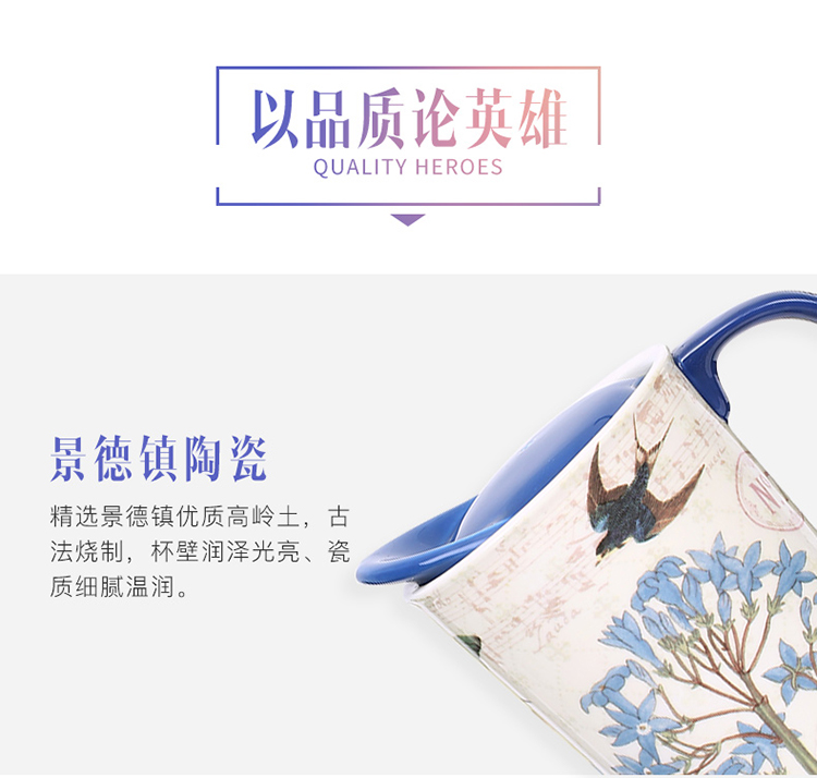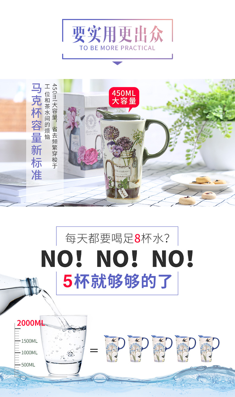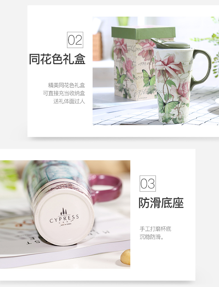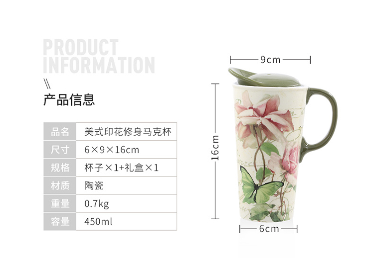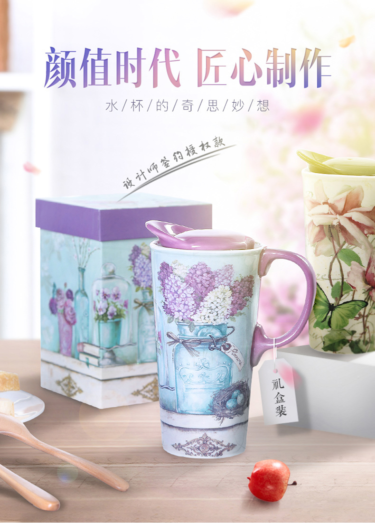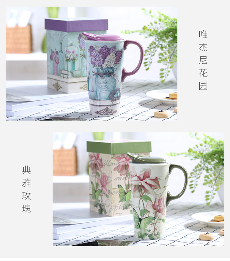愛屋格林陶瓷杯子女帶蓋禮盒馬克杯
