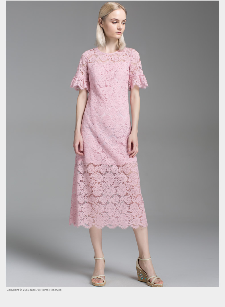 yuespace重工蕾絲繡花寬松夏裝裙子