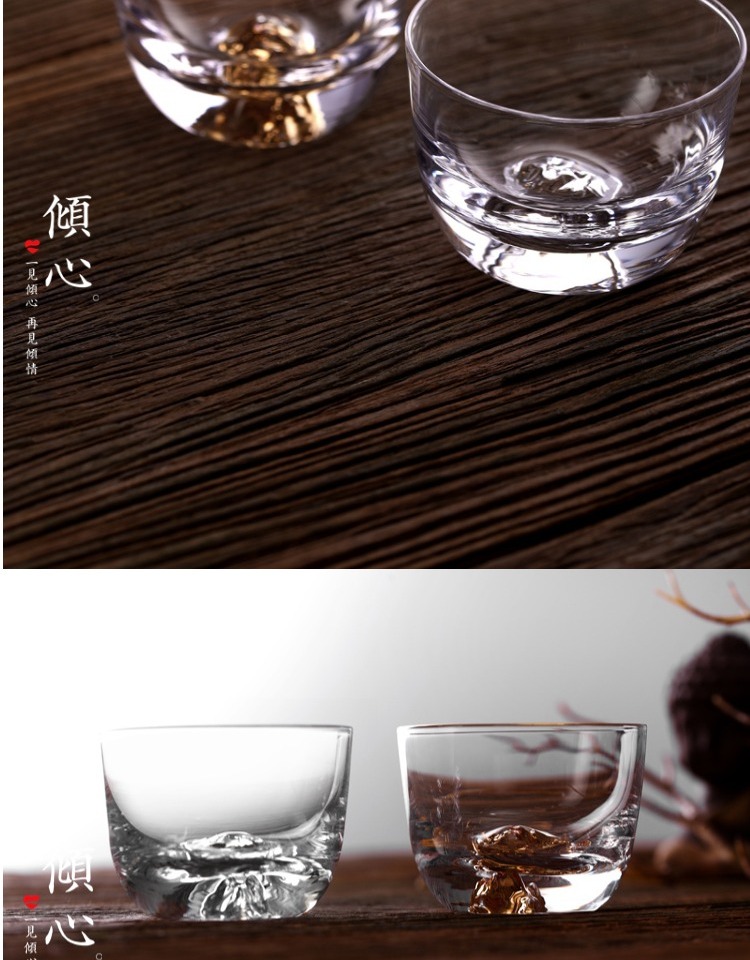 日式玻璃描金品茗杯富士山杯藏金杯酒杯功夫茶杯主人杯聞香杯茶具