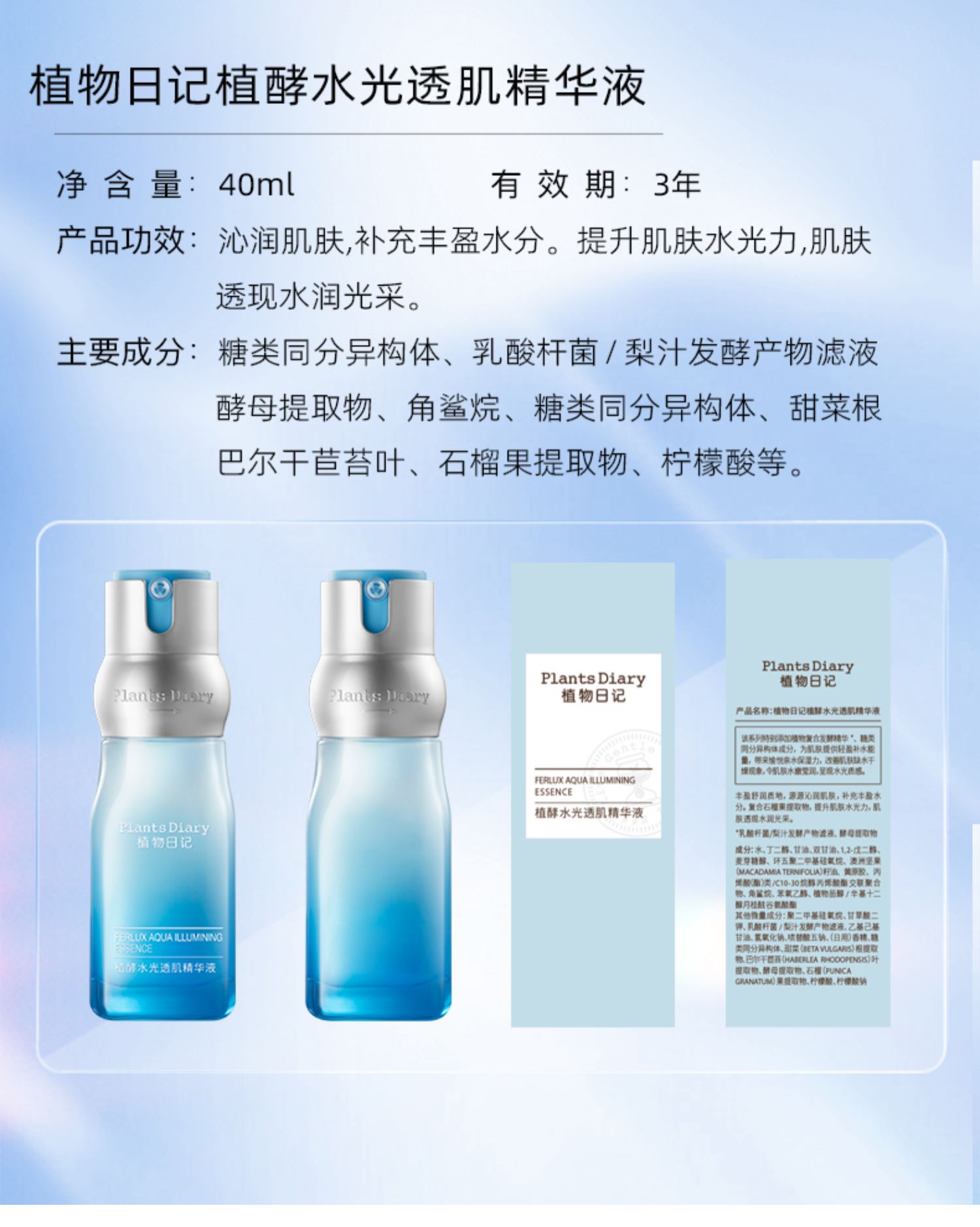 植物日記西洋梨植酵水光保濕精華液滋潤補水保濕深層煥亮護膚品女