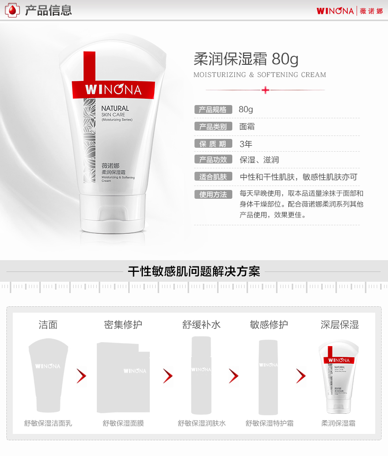 薇諾娜柔潤保濕霜80g敏感肌膚護膚品修護舒緩補水面霜有防偽