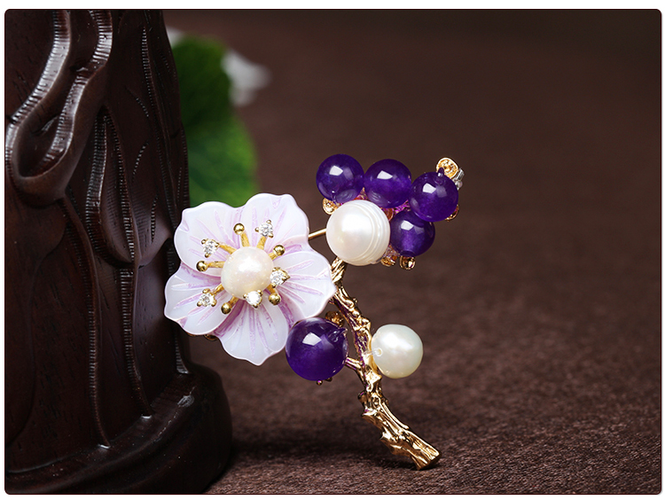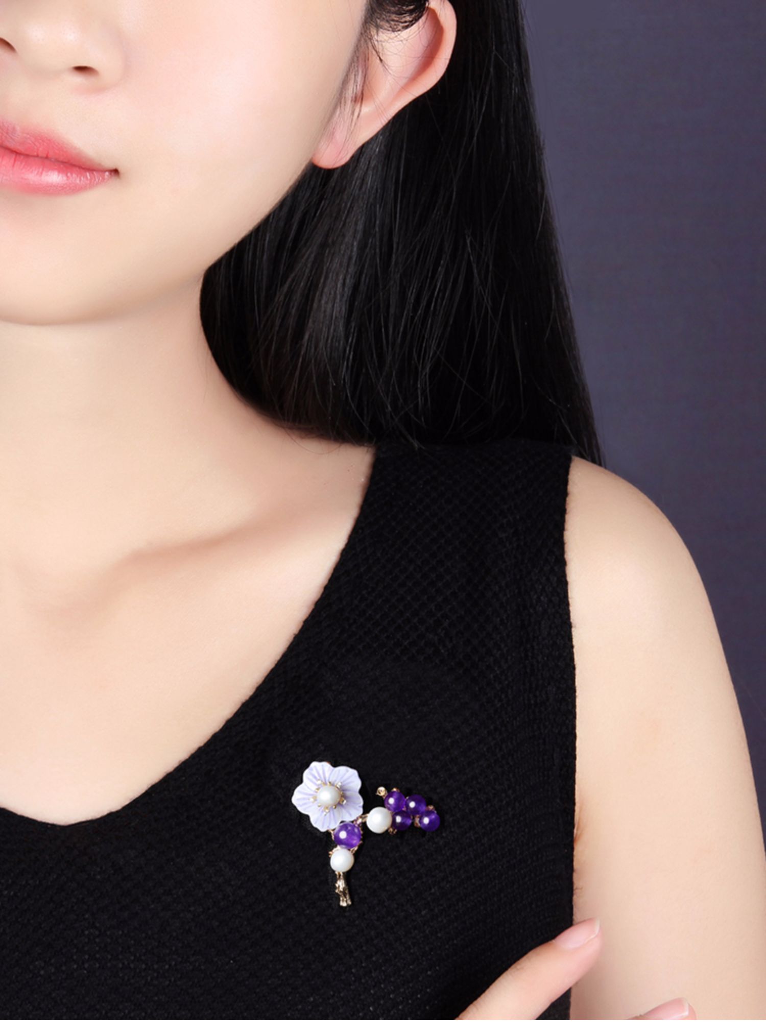 復古甜美簡約花朵珍珠胸針女簡約民族風玉髓胸花別針配飾外套飾品