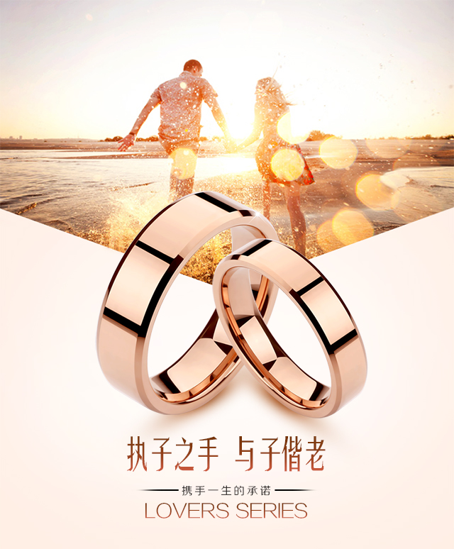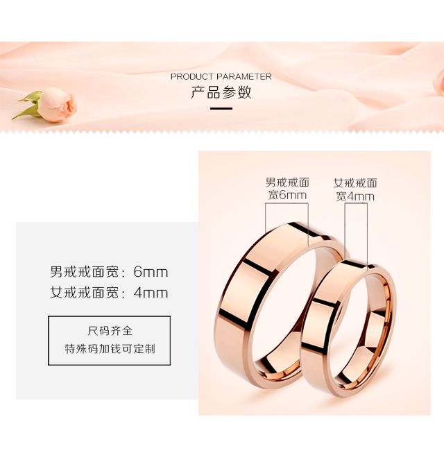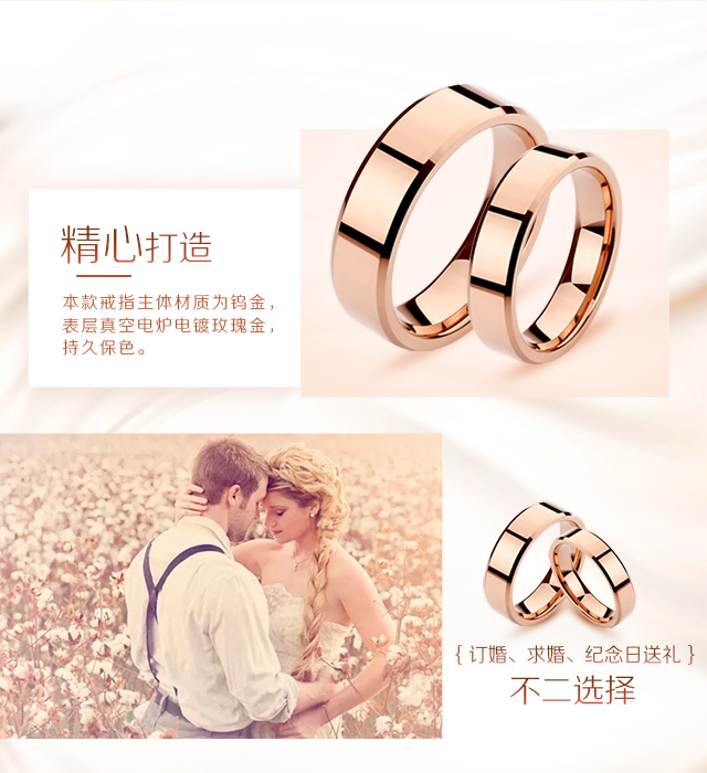 男士情侶玫瑰金不掉色k金鎢鋼對戒