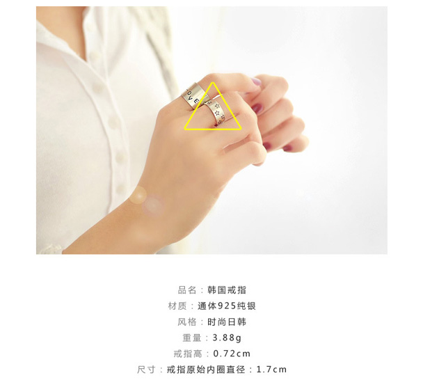 S925純銀戒指時尚韓版復古星星指環女 清新學生開口尾指生日禮物