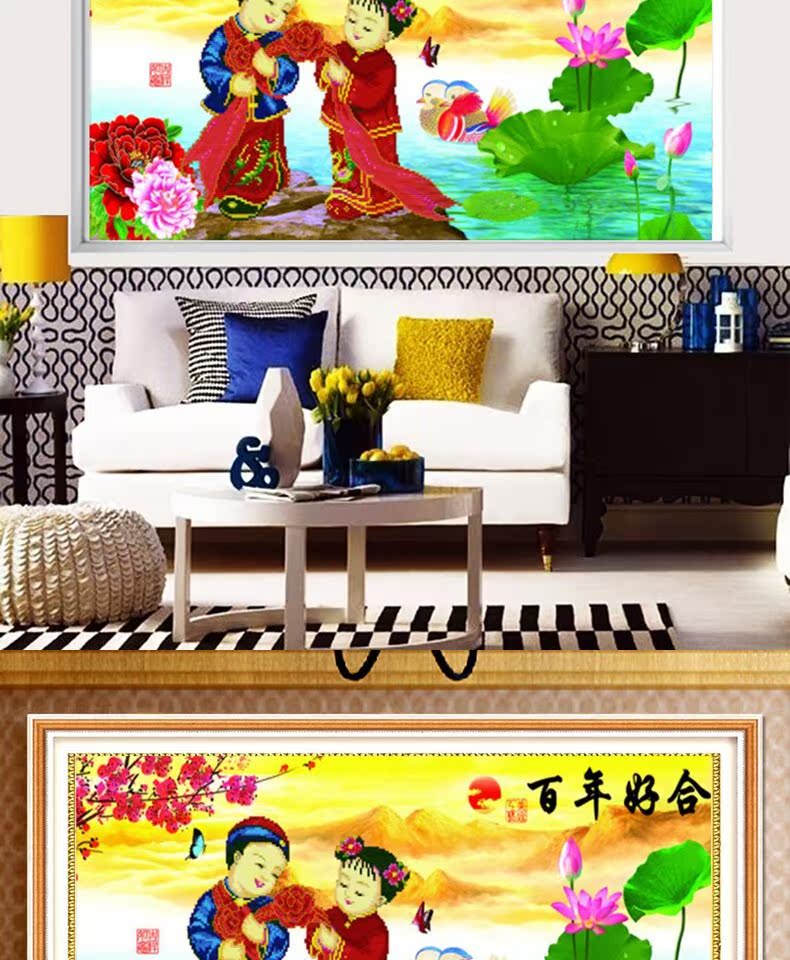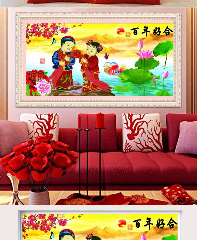新款鉆石畫百年好合鴛鴦婚慶結婚十字繡客廳臥室粘貼鑲點磚畫