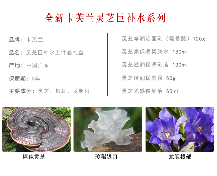 卡芙蘭正品靈芝巨補水五件套秋冬植物補水保濕滋潤抗皺護膚品套裝