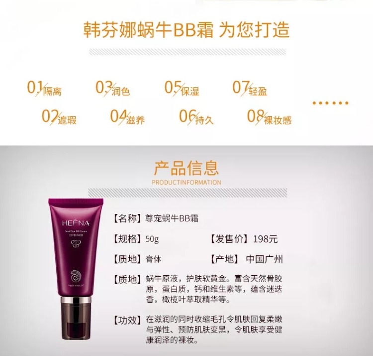 韓芬娜尊寵蝸牛明星bb霜保濕持久提亮膚色控油遮瑕裸妝粉底液正品