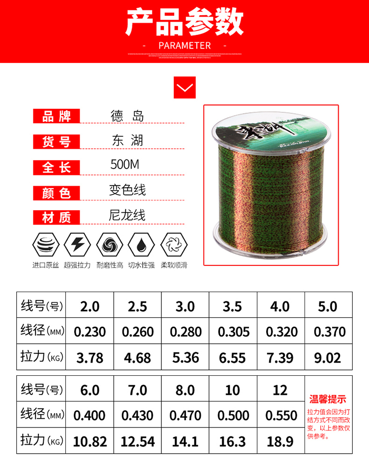 德島東湖500米魚線斑點變色主線超強拉力海竿線尼龍線子線 海釣線