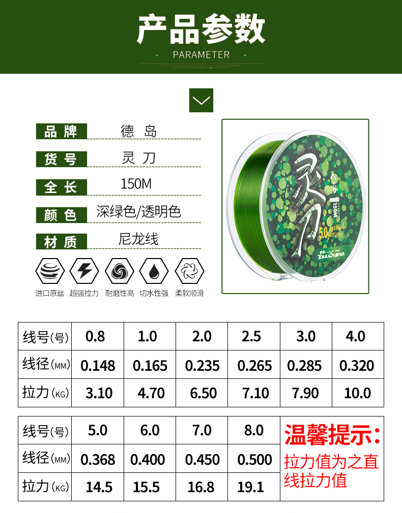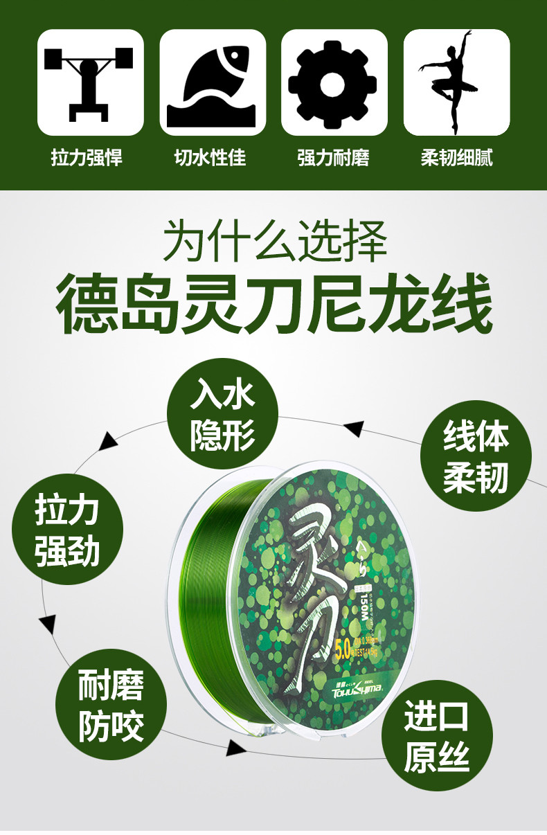 德島150米靈刀漁輪線尼龍魚線主線子線拉力臺釣線磯釣線海釣線