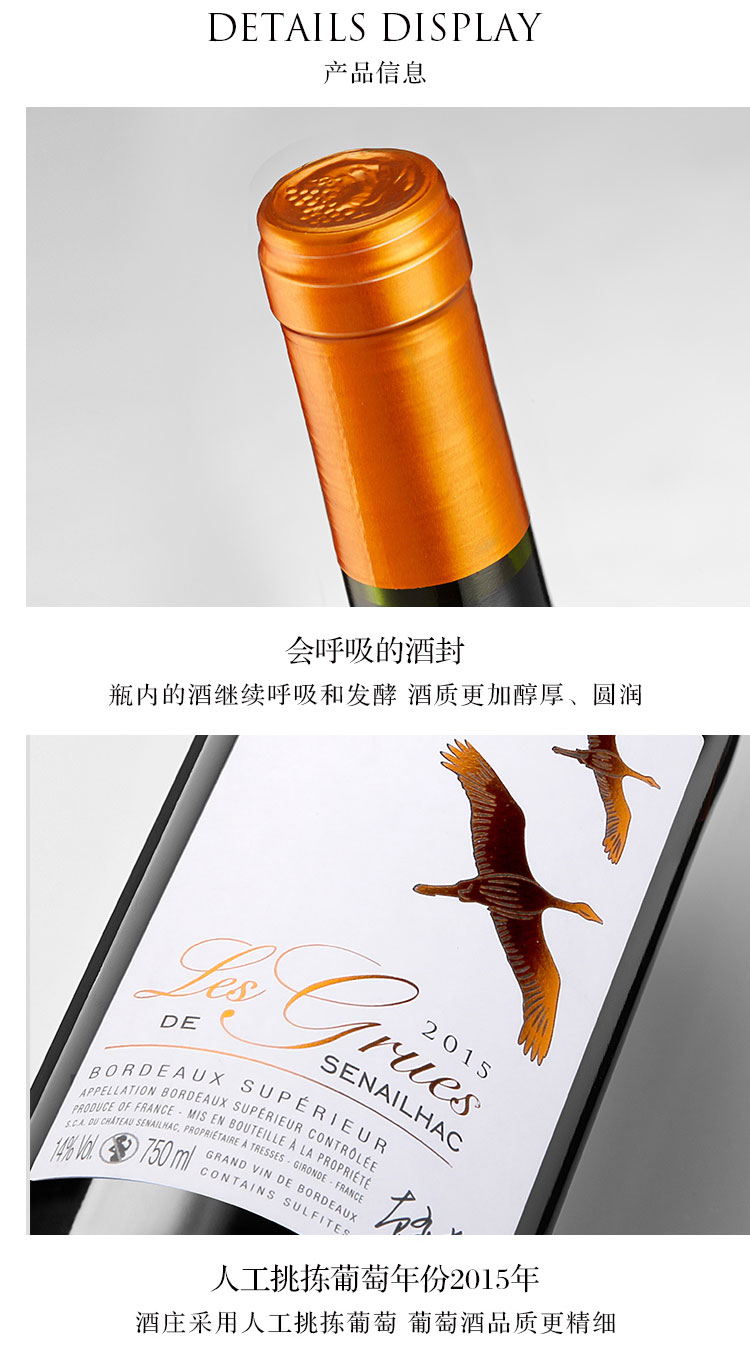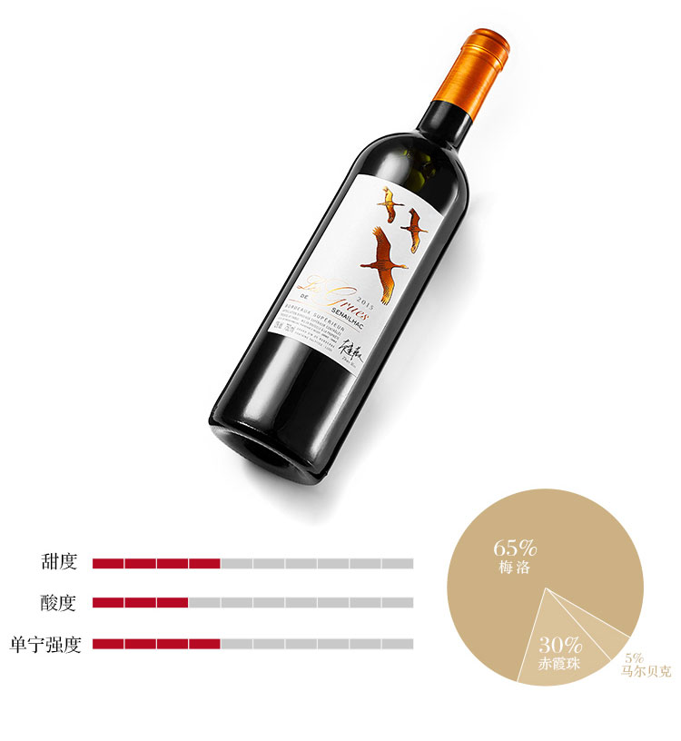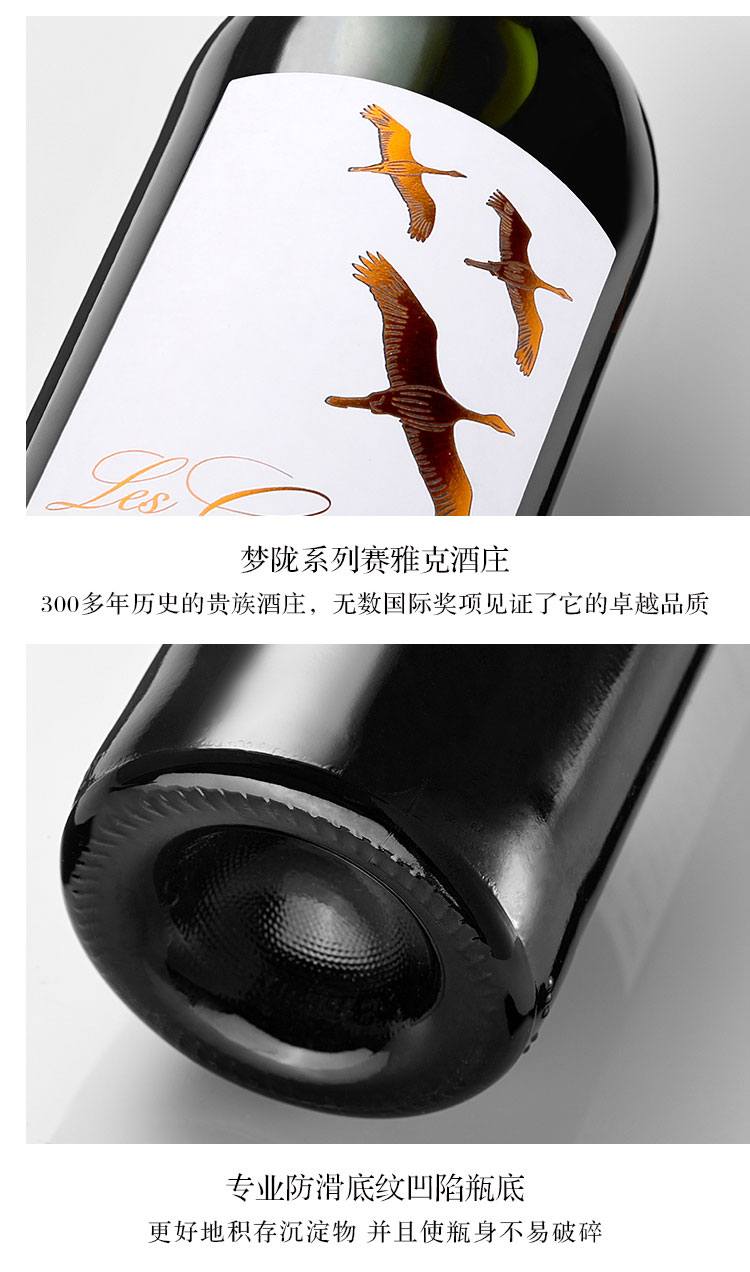 夢隴酒莊紅酒法國原瓶進口賽雅克城堡飛鶴干紅葡萄酒2015囤貨裝