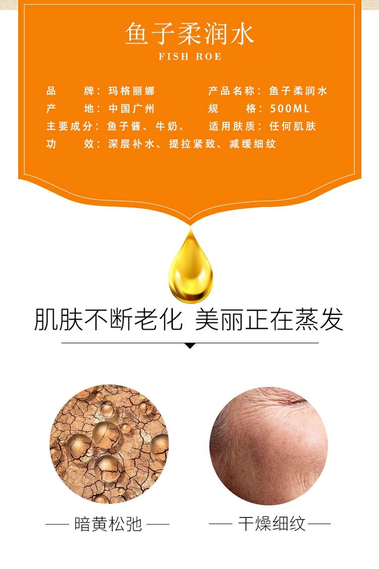 瑪格麗娜魚子柔潤精華水500ml舒緩修護魚籽爽膚水V581B官方旗艦店
