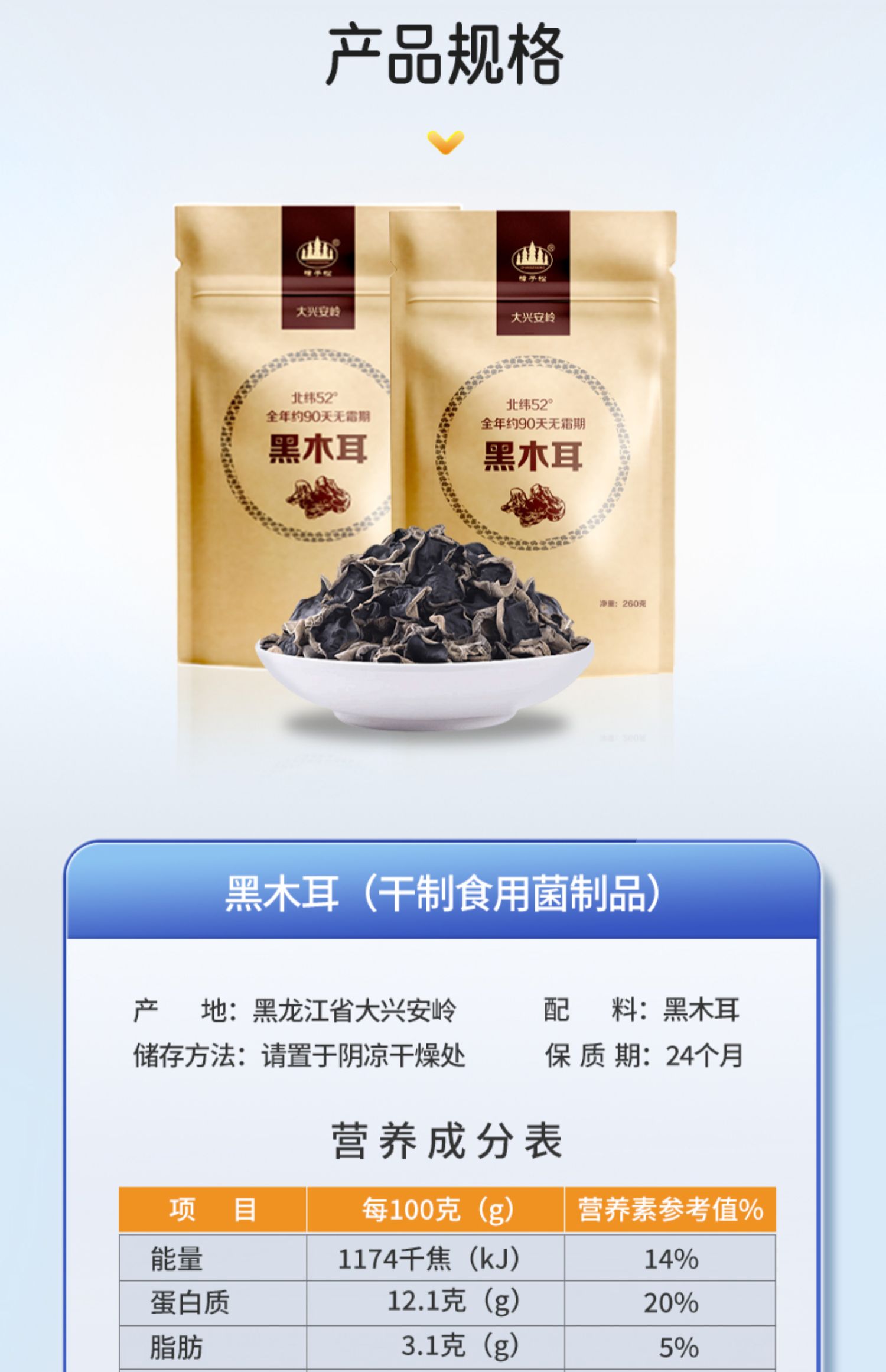 樟子松大興安嶺黑木耳有機肉厚無根土特產級免摘禮盒脆非野生中秋