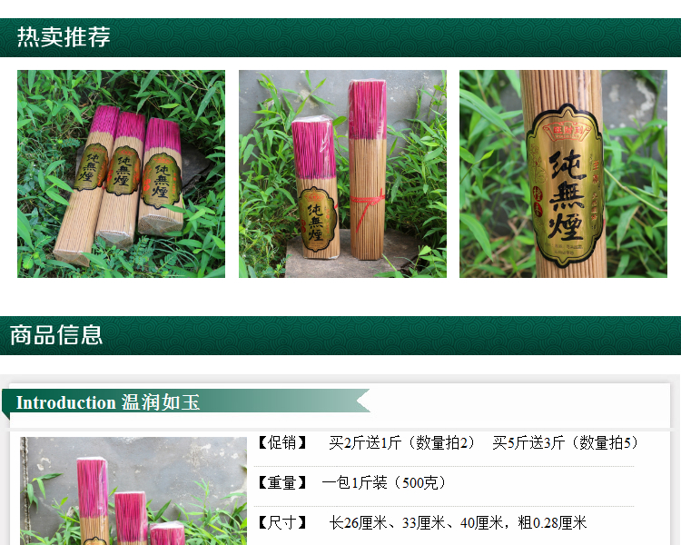特性:此款香采用天然檀香粉、竹炭粉、植物粘粉制作而成,好材料,香才會好,無煙環保,不刺鼻,老人、小孩、孕婦都可以使用