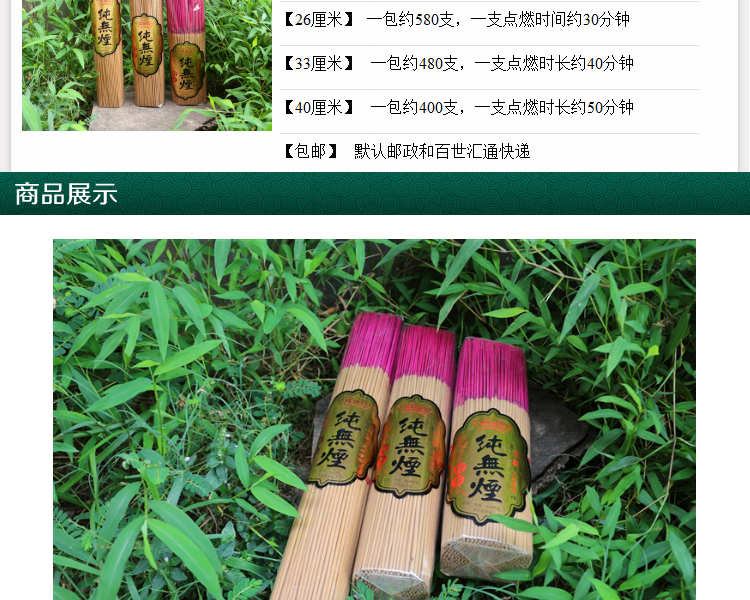 26厘米:粗0.28厘米,一包約580支,一支點燃時長約30分鐘