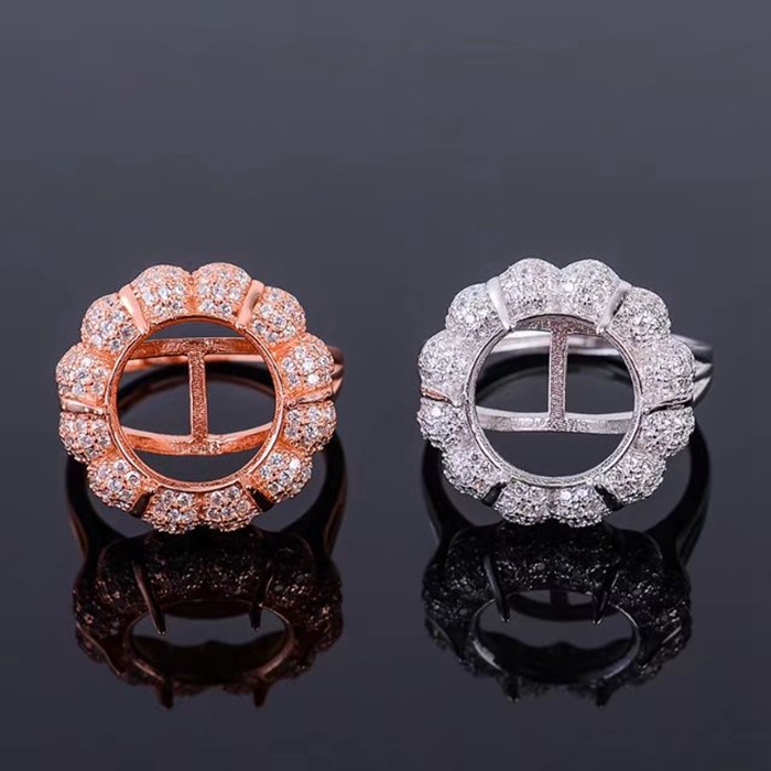 925純銀戒指豪華圓形戒托六爪空托