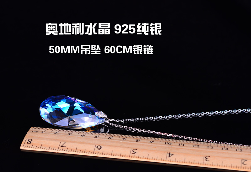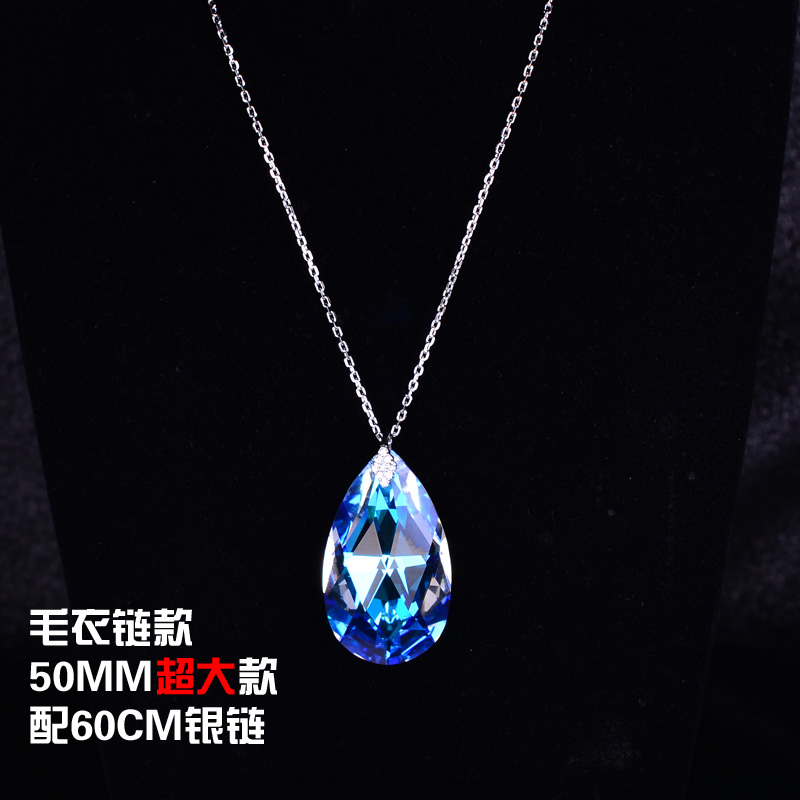 50MM超大號水晶毛衣鏈 60CM加粗銀鏈奧地利水晶時尚特大禮物