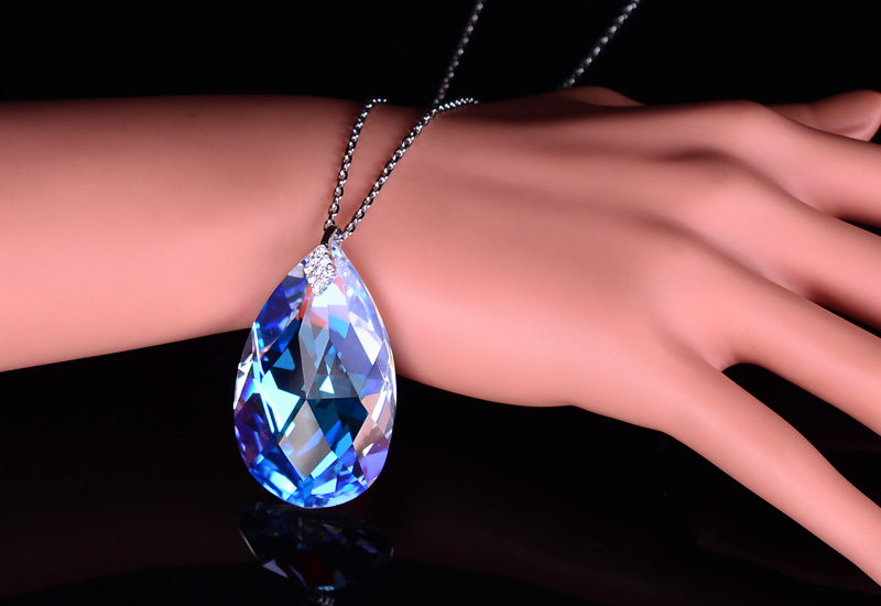 藍彩女925純銀奧地利水晶鎖骨項鏈