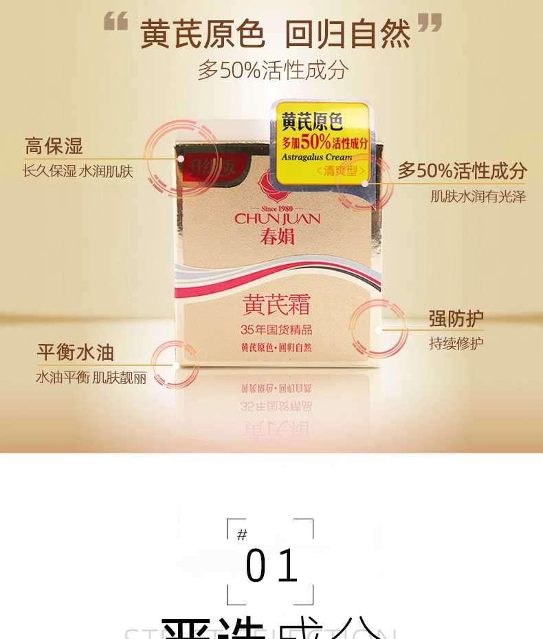 春娟黃芪霜45g油皮補水保濕面霜