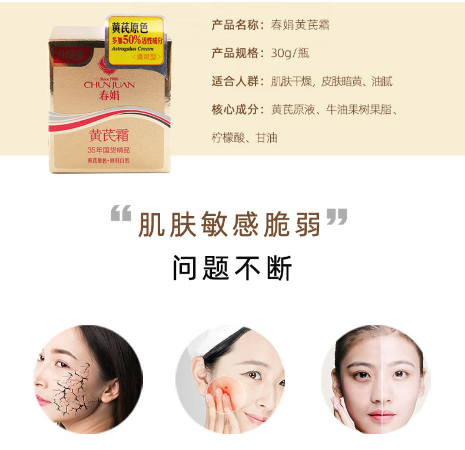 【廠家自營】春娟黃芪霜30g金盒面霜