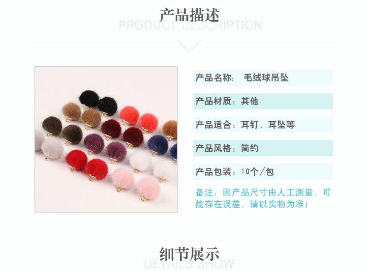 毛絨球吊墜自制耳環材料耳釘耳墜毛球diy耳飾品配件10顆包