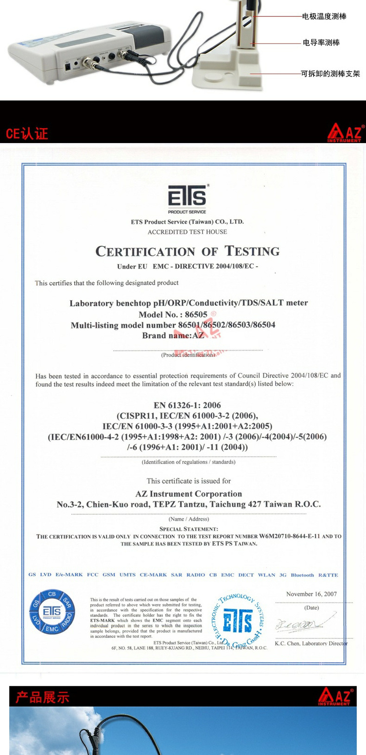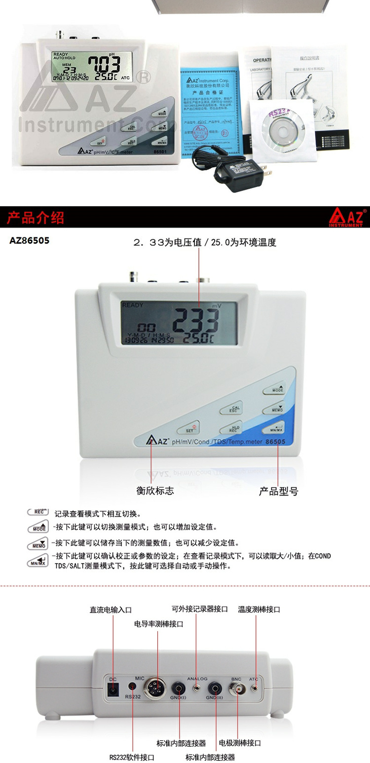 臺灣衡欣PH計鹽度專業酸堿度計AZ86555工業水質檢測儀86505/9861