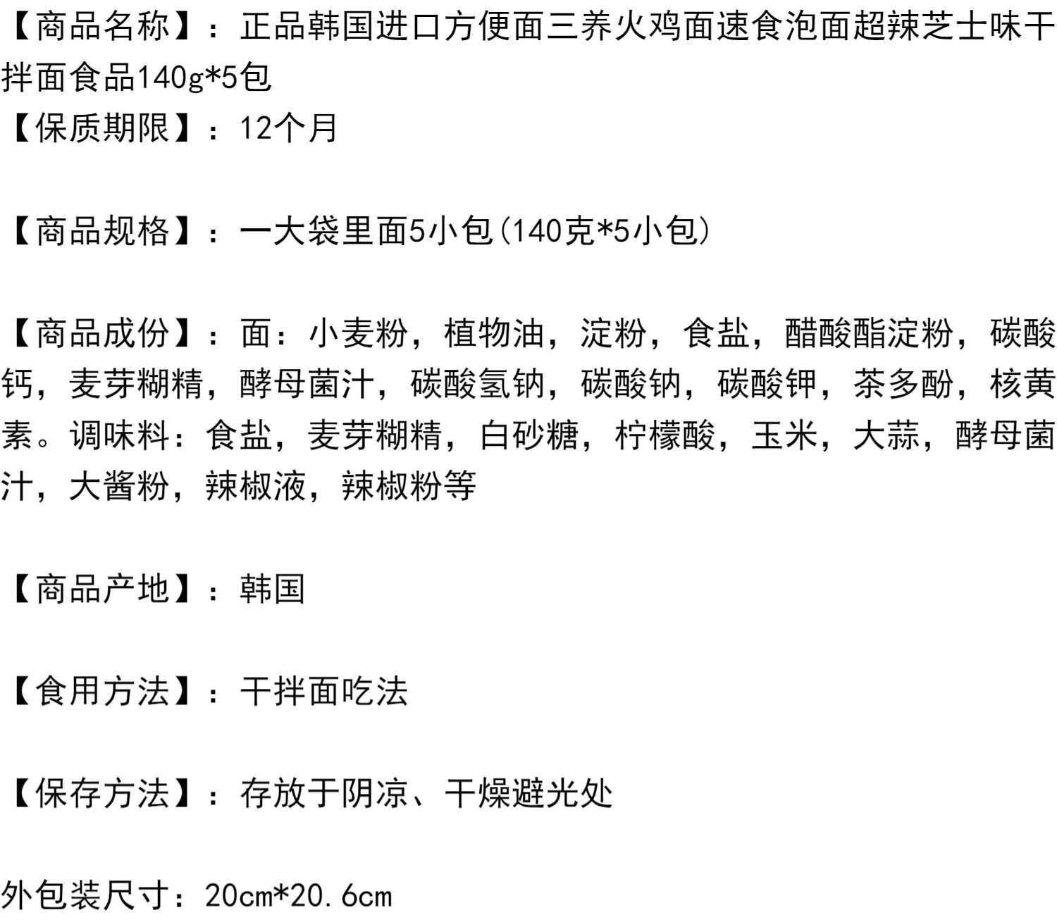 97¥ CZ0001 S16VW1cdxSQ¥ https://m.tb.cn/h.5SUQD77 韓國進口方便面三養火雞面速食泡面超辣芝士味干拌面食品140g*5包 --------------------- 韓國進口方便面三養火雞面速食泡面超辣芝士味干拌面食品140g*5包 --------------------- 【原售價】24.9元 【優惠券】2元 【券后價】22.9元。