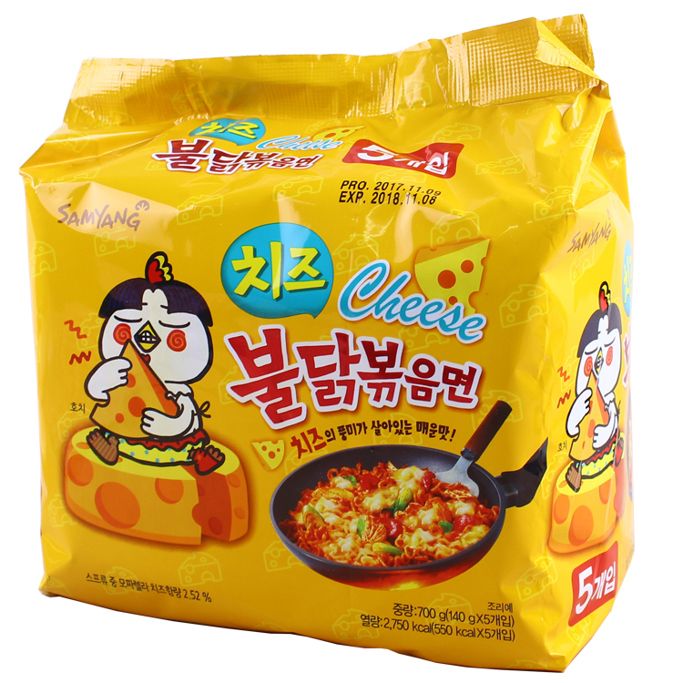 韓國進口方便面三養火雞面速食泡面超辣芝士味干拌面食品140g*5包