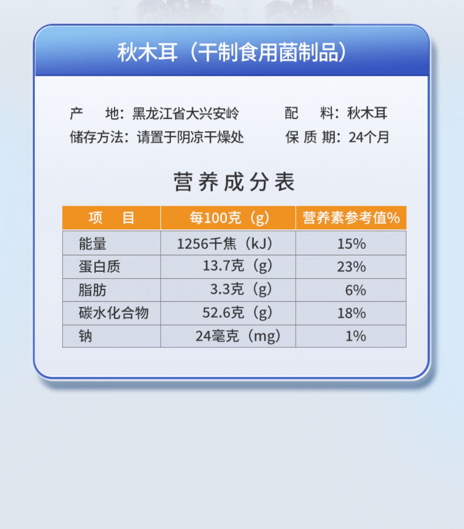 大興安嶺黑木耳東北土特產有機干貨秋野生椴一級龍江肉厚小碗山珍
