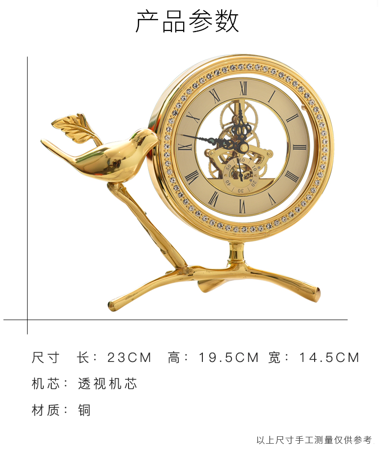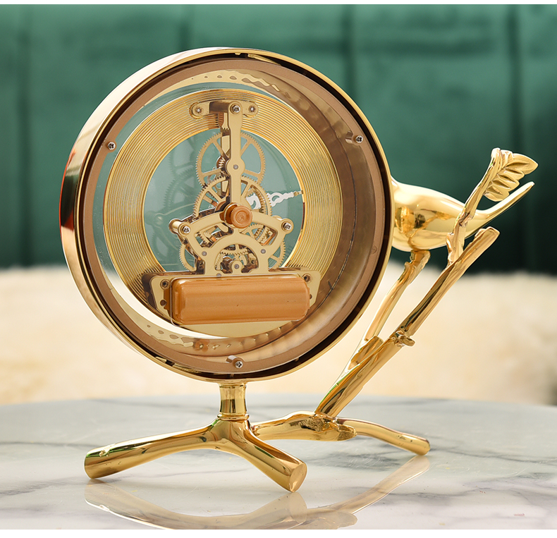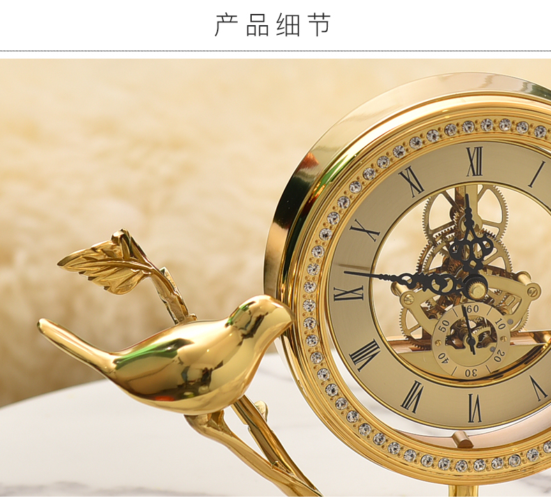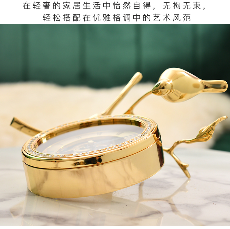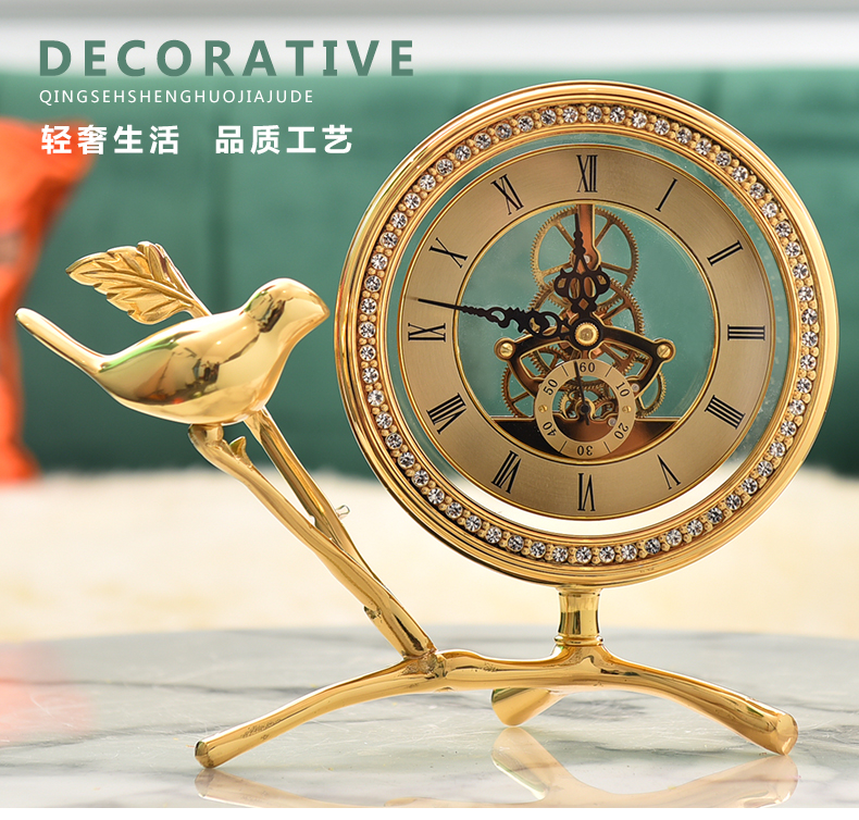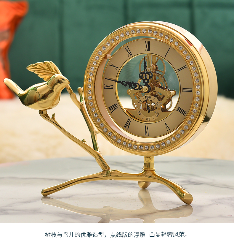 輕奢創意時尚銅座鐘美式現代簡約客廳臺鐘小鳥銅鐘表家居