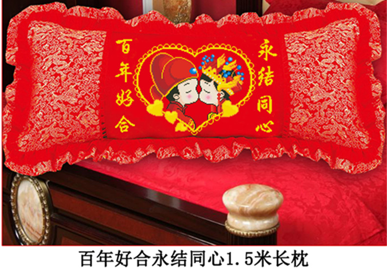 新款十字繡抱枕五七件套結婚喜慶情侶臥室單雙人長枕頭套件1.5米