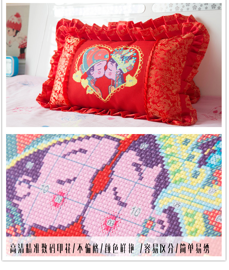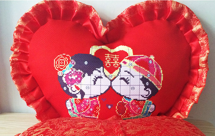 2020新十字繡單人結婚卡通大紅抱枕