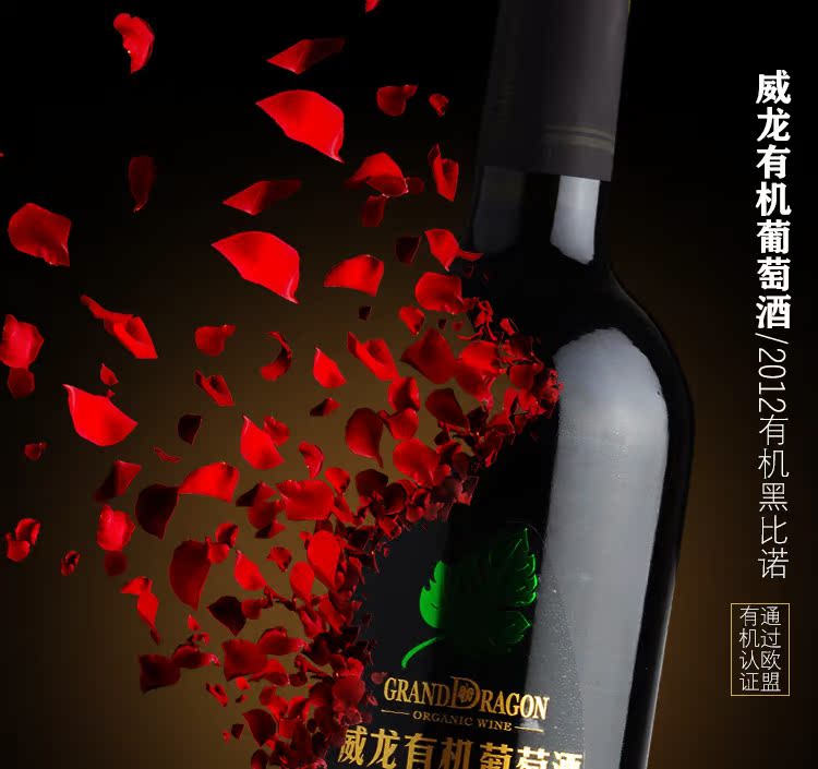 威龍有機干紅葡萄酒黑比諾2012 國產紅酒禮盒裝 整箱6支裝 包郵