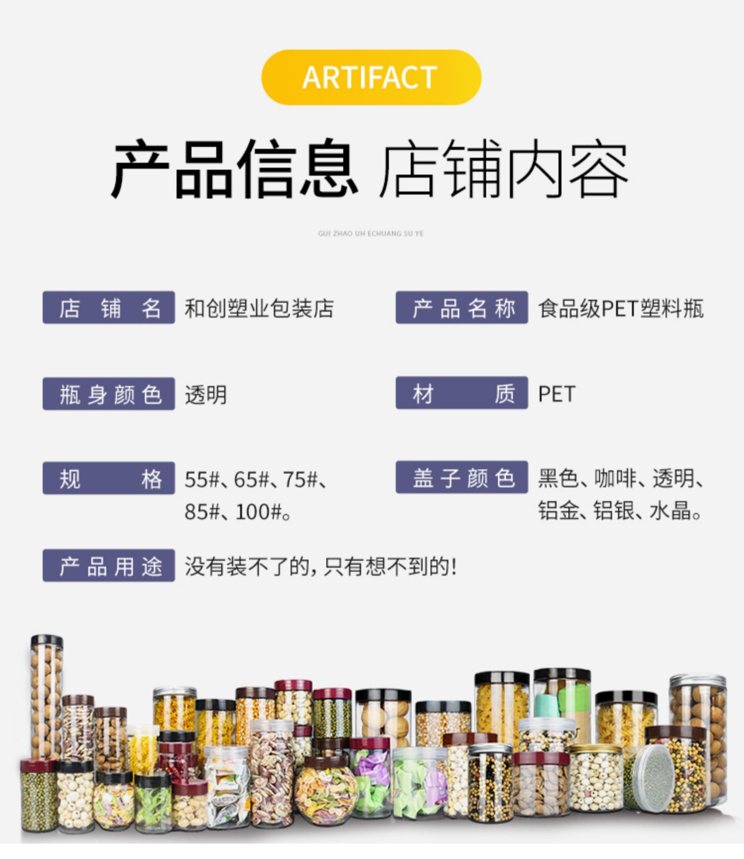85鋁蓋塑料瓶子家用透明塑料罐子