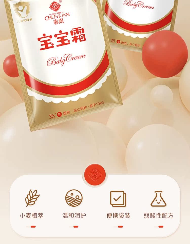 正品老牌子春娟寶寶霜30g*5袋裝溫和保濕護膚品滋潤補水兒童面霜