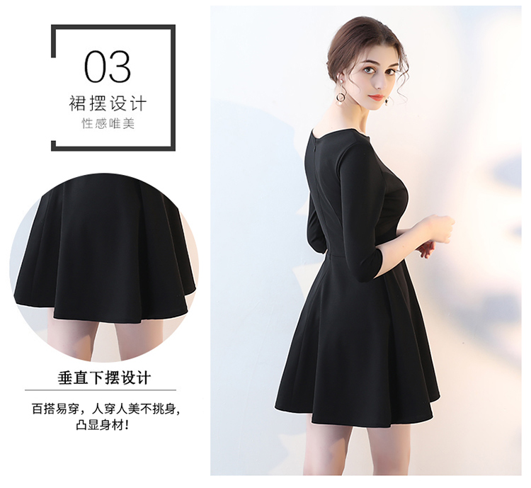 黑色連衣裙女秋裝2022新款圓領氣質小黑裙7分袖A擺顯瘦裙子