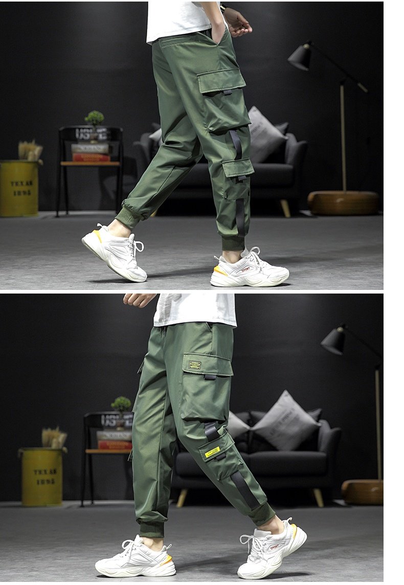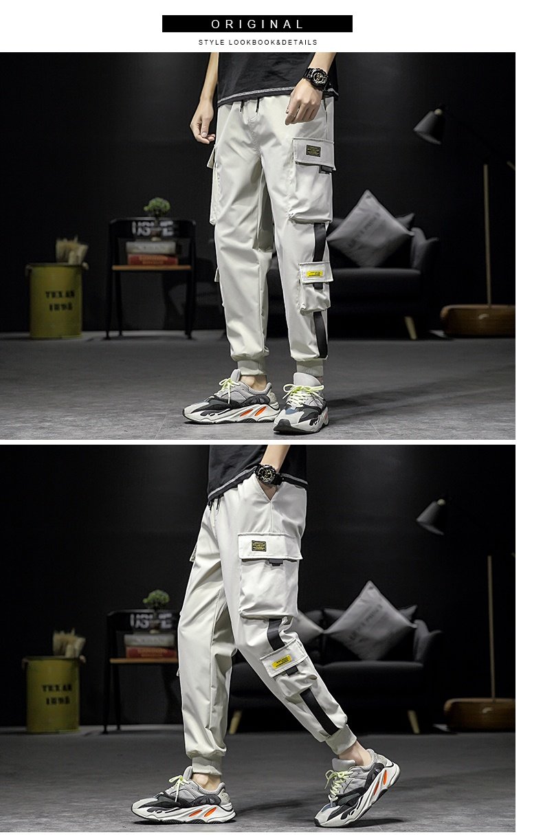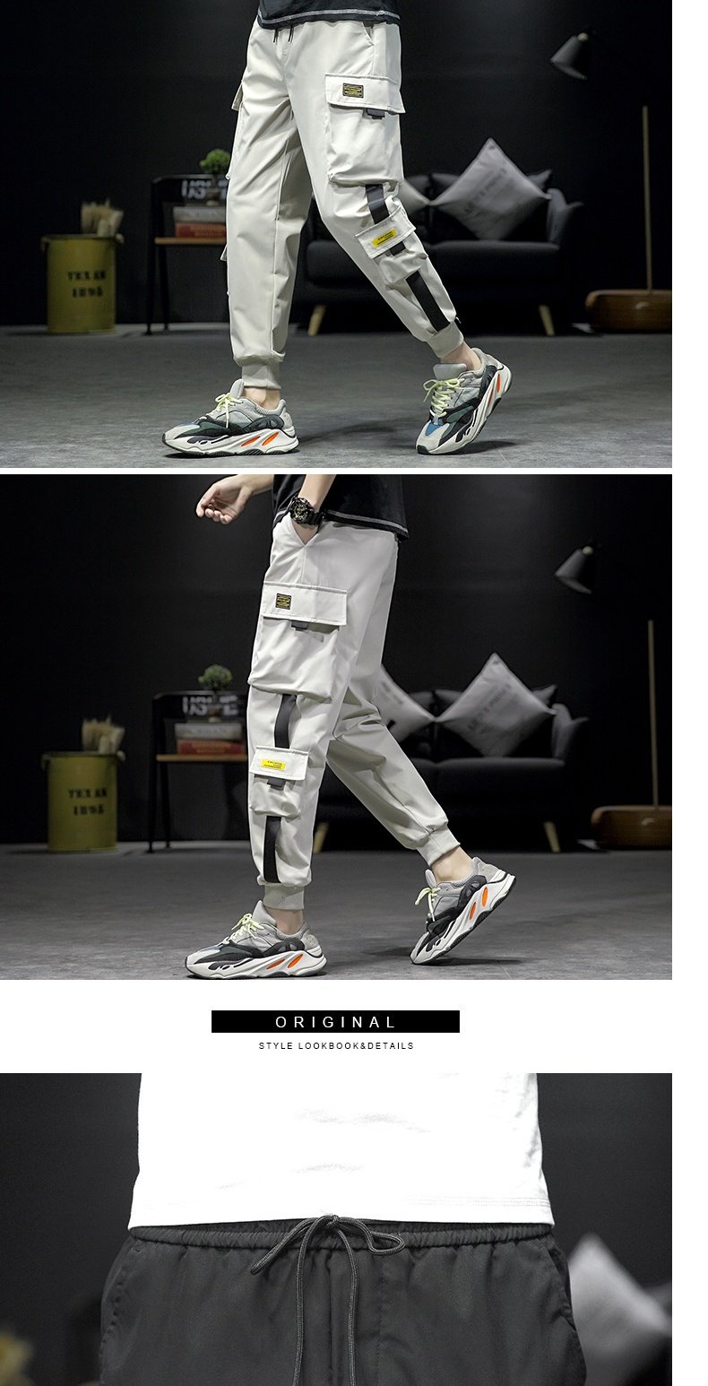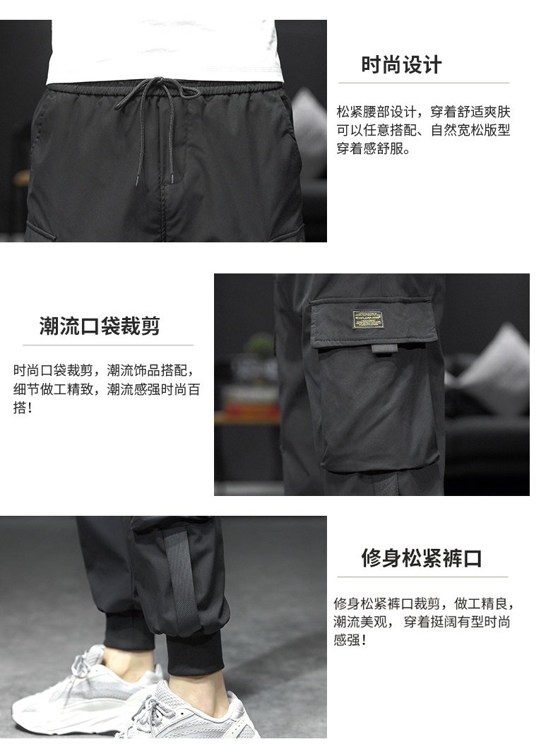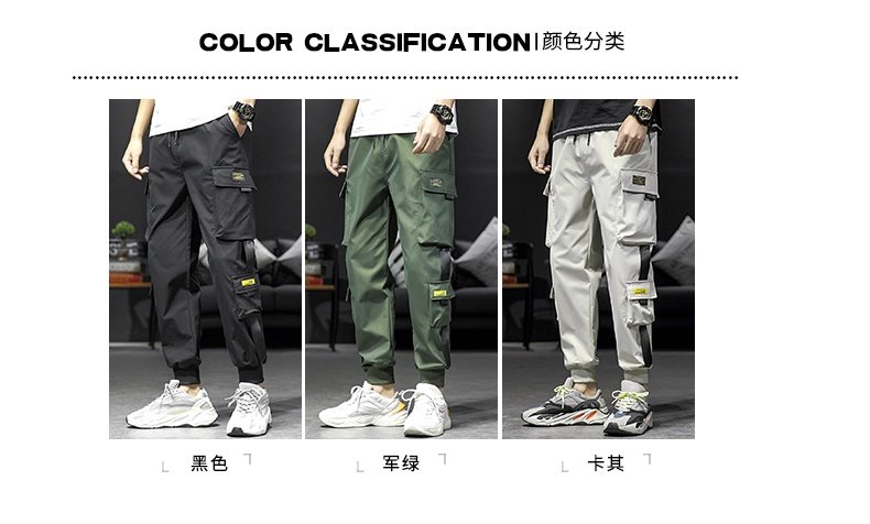 香港潮牌余文樂卡其色機能男長褲子