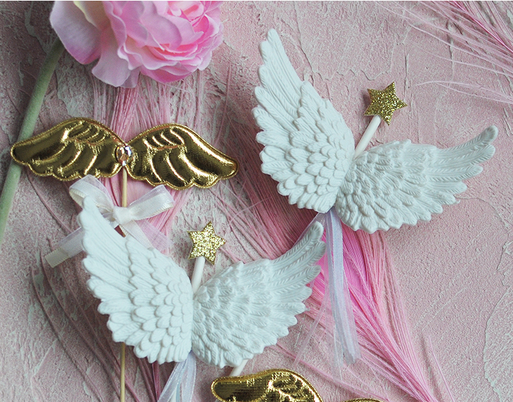 蛋糕裝飾 華麗塑料白色天使翅膀 絲帶蝴蝶結裝飾插牌 裝扮插件3枚