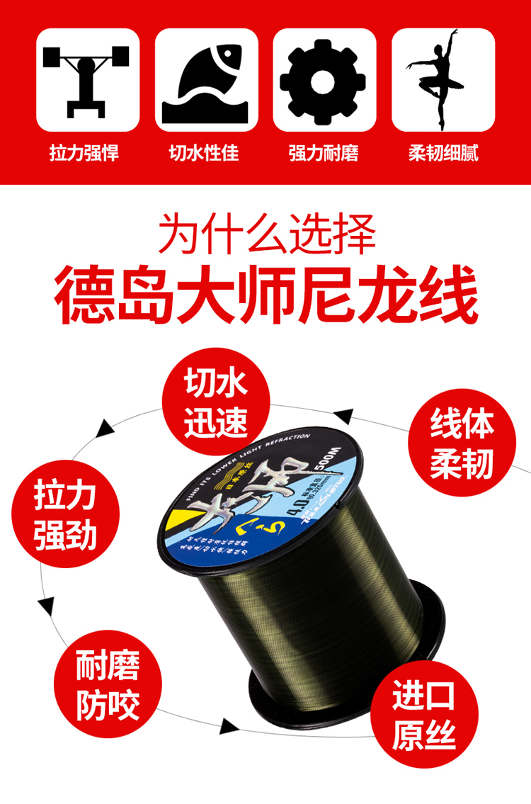 德島大師魚線主線超強拉力500米尼龍線子線海釣線進口漁線海竿線