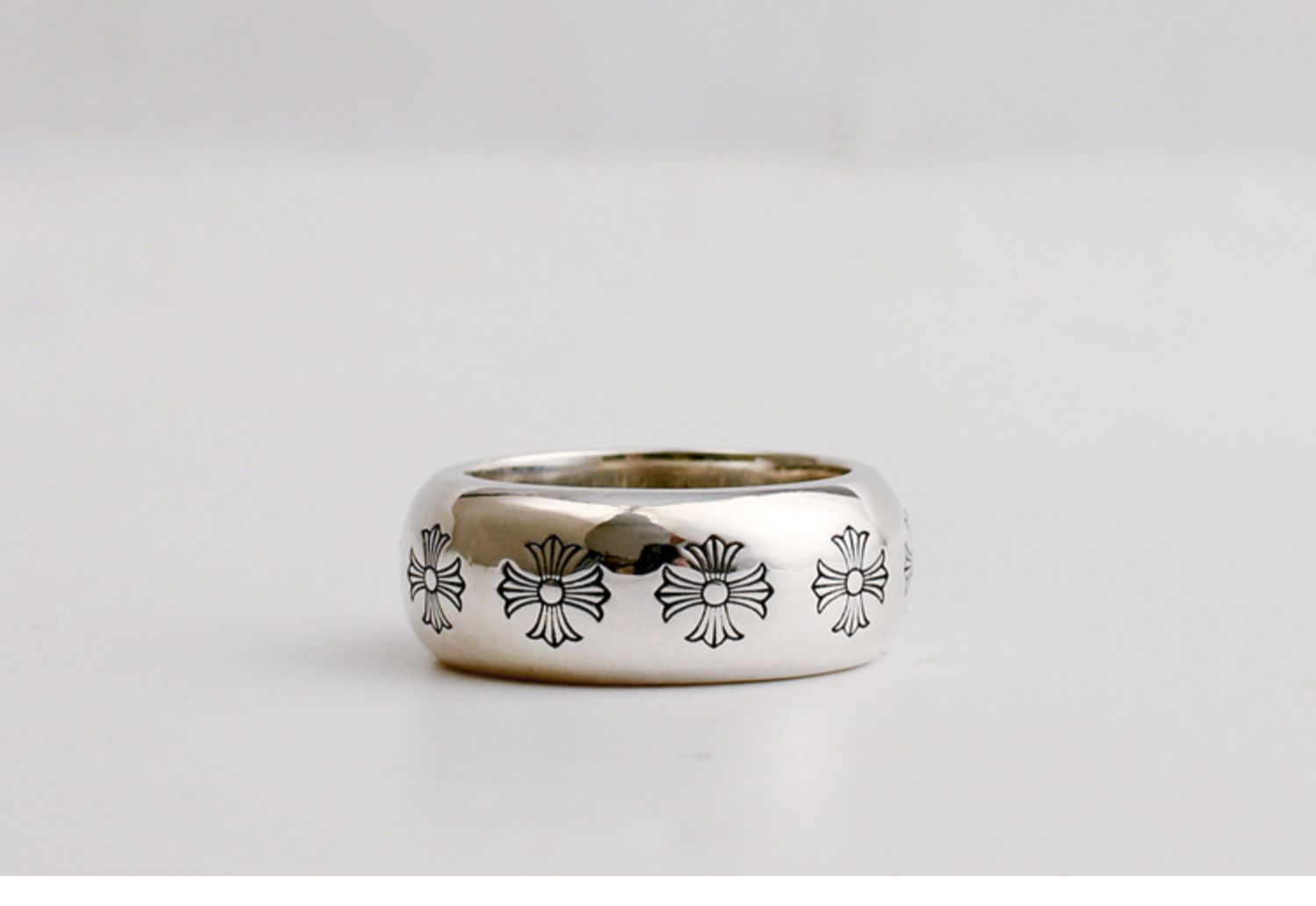 一休老銀匠925純銀十字花圓環光面戒指男女朋克情侶戒指 潮流指環