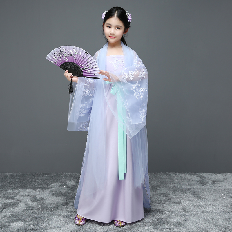 兒童古裝女漢服女孩古箏襦裙清新淡雅秋冬演出服貴妃仙女服中國風