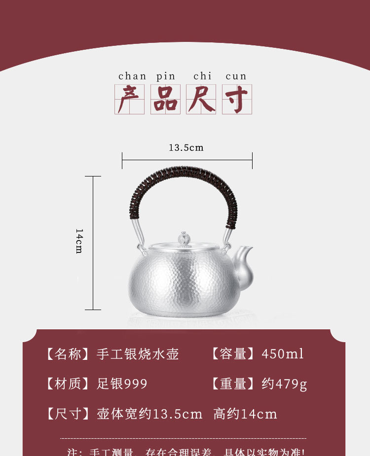 蘇州銀樓足銀999手工福字泡茶茶壺